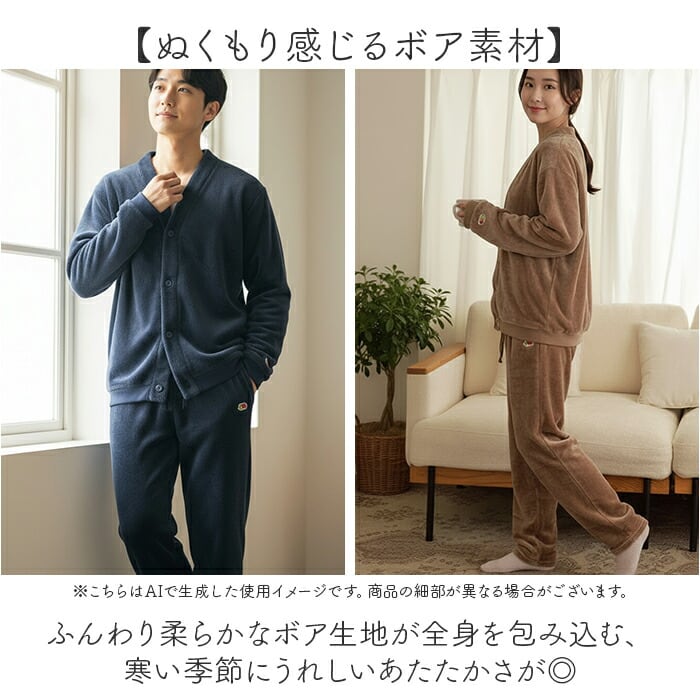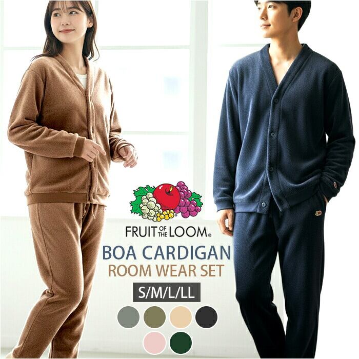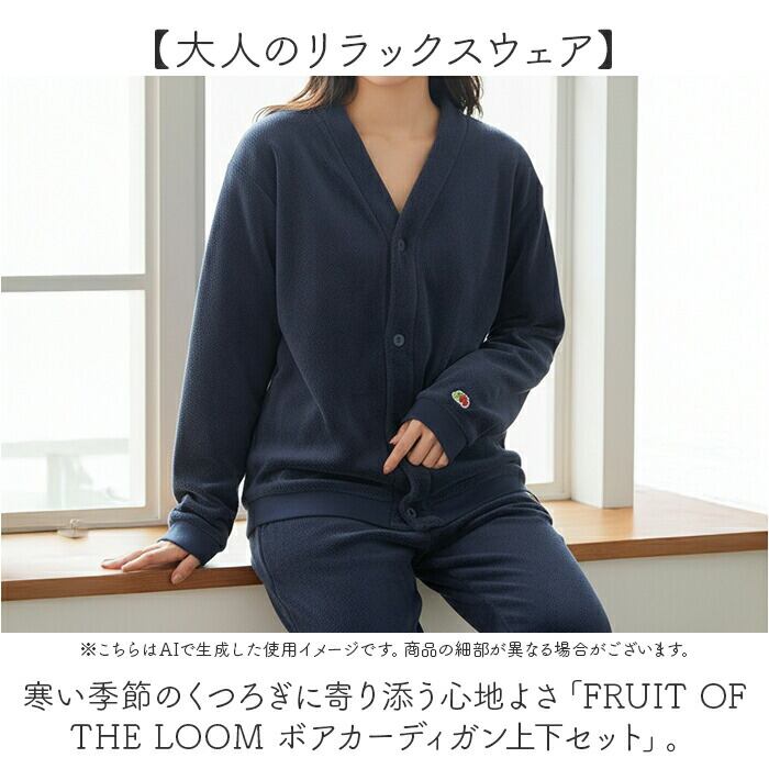 ・寒い季節のくつろぎに寄り添う心地よさ「FRUIT OF THE LOOM ボアカーディガン上下セット」。