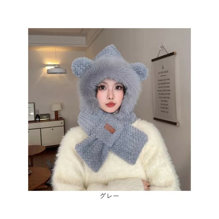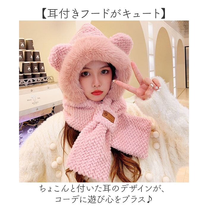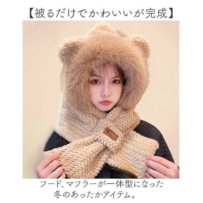 ・フード、マフラーが一体型になった冬のあったかアイテム。