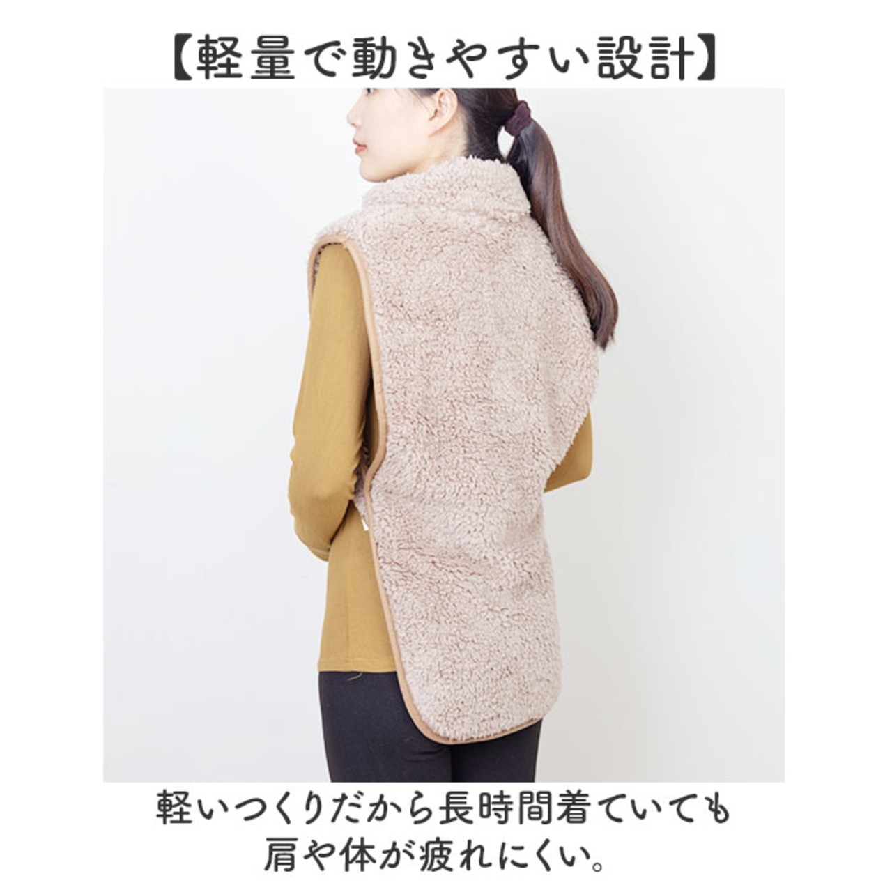 ・軽いつくりだから長時間着ていても肩や体が疲れにくい。