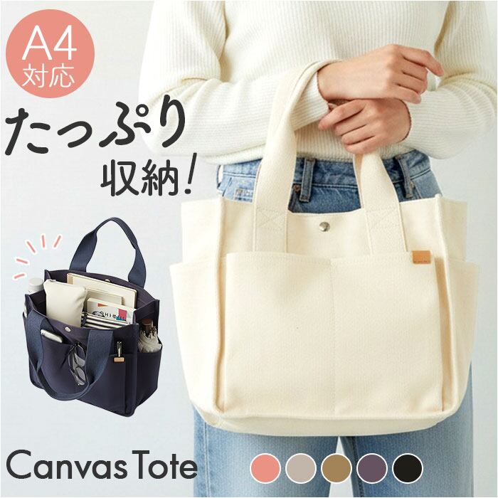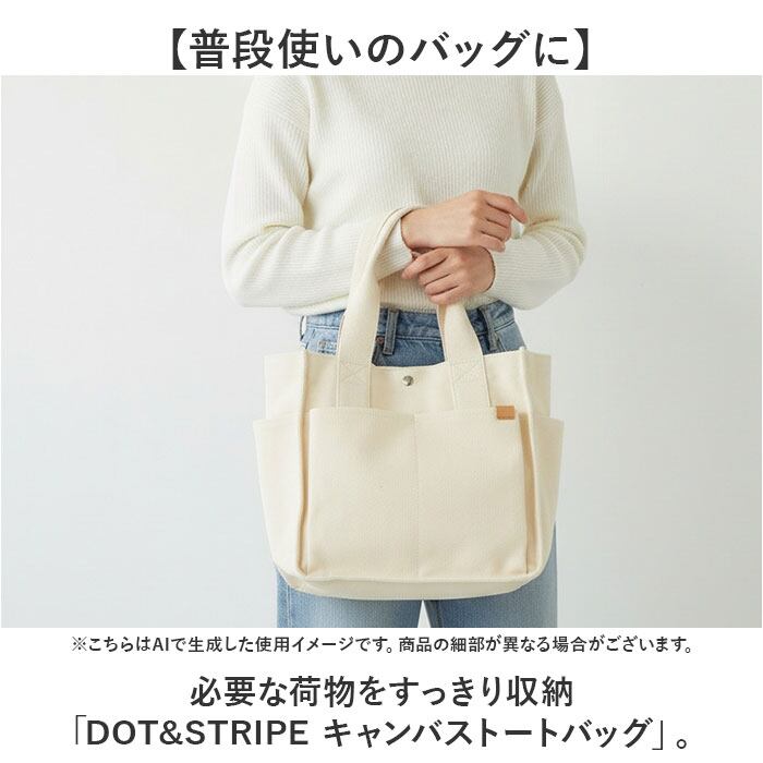 ・必要な荷物をすっきり収納「DOT&STRIPE キャンバストートバッグ」。