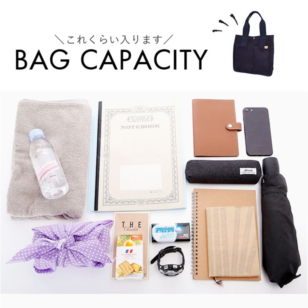 ・書類やタブレット、お弁当やマイボトルもすっぽり入るサイズで通勤通学に最適◎