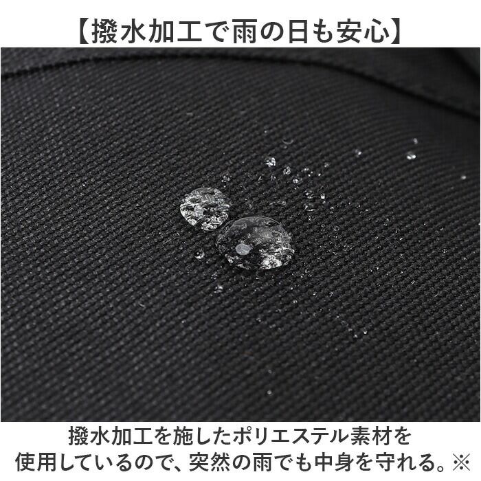 ・撥水加工を施したポリエステル素材を使用しているので、突然の雨でも中身を守れる。※完全防水ではありません。