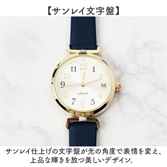 ・サンレイ仕上げの文字盤が光の角度で表情を変え、上品な輝きを放つ美しいデザイン。