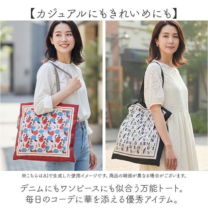 ・デニムにもワンピースにも似合う万能トート。毎日のコーデに華を添える優秀アイテム。