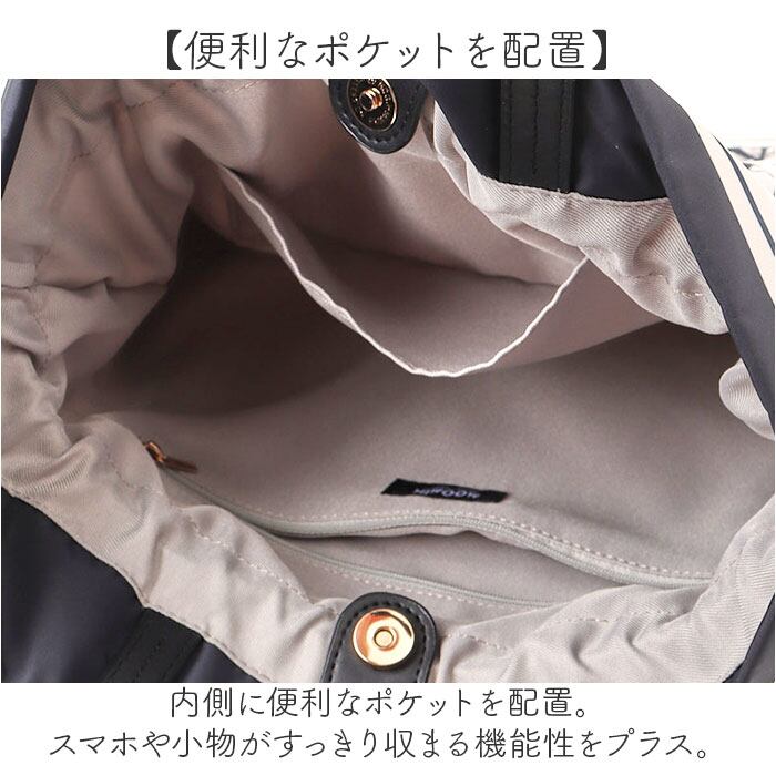 ・内側に便利なポケットを配置。スマホや小物がすっきり収まる機能性をプラス。