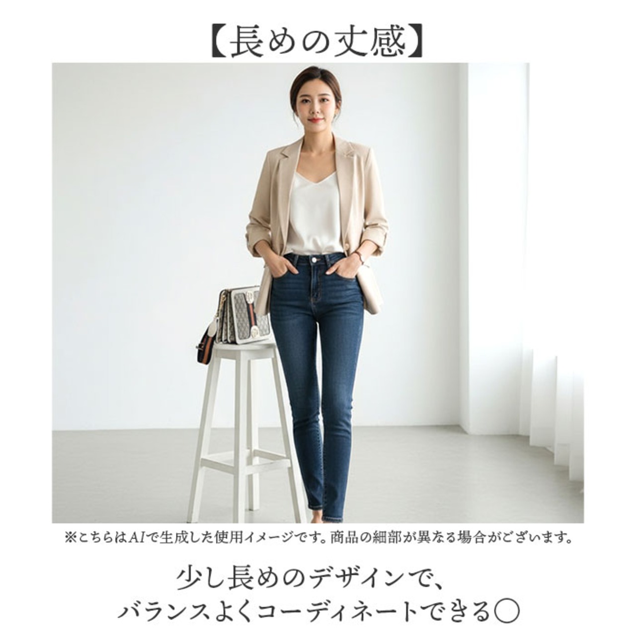 ・少し長めのデザインで、バランスよくコーディネートできる〇