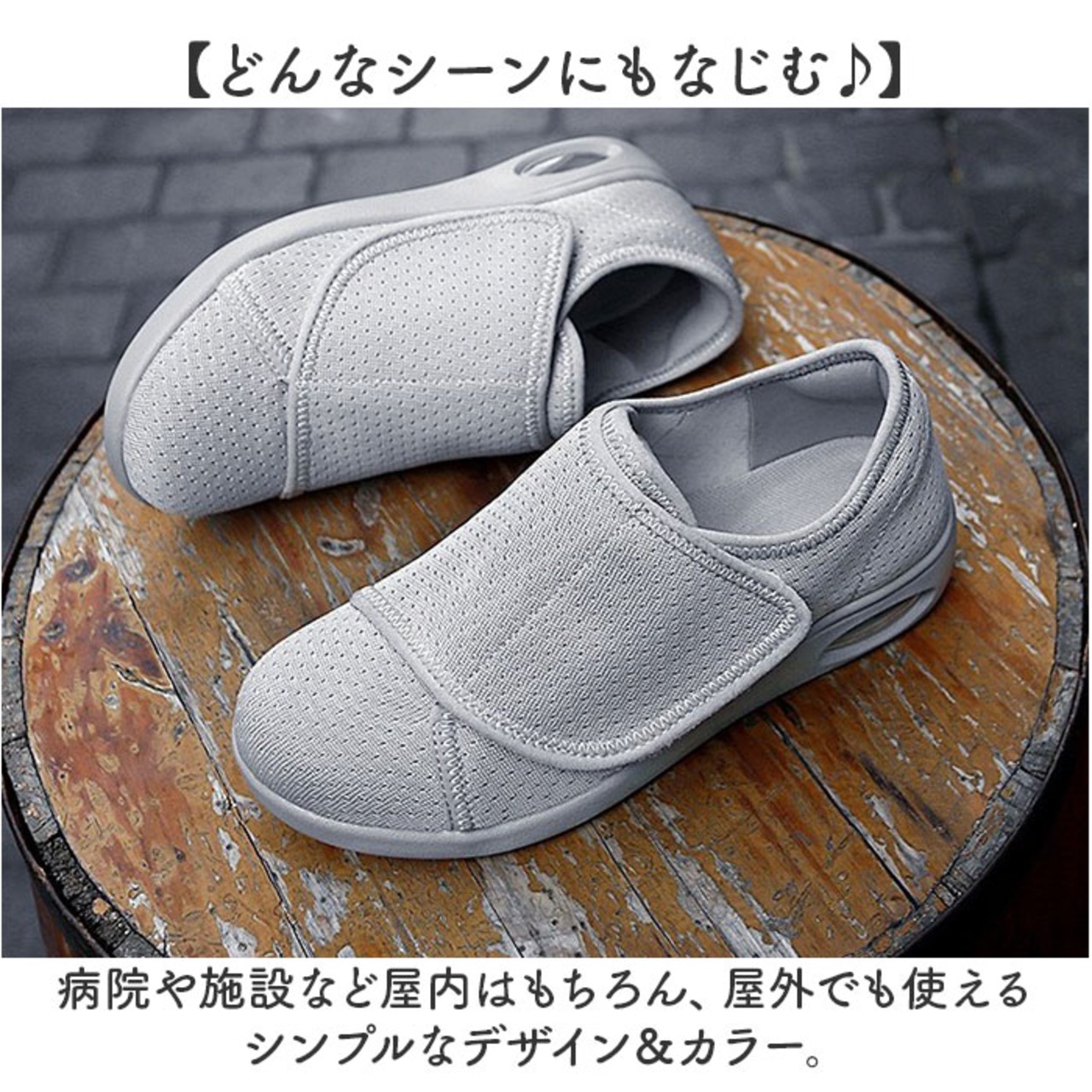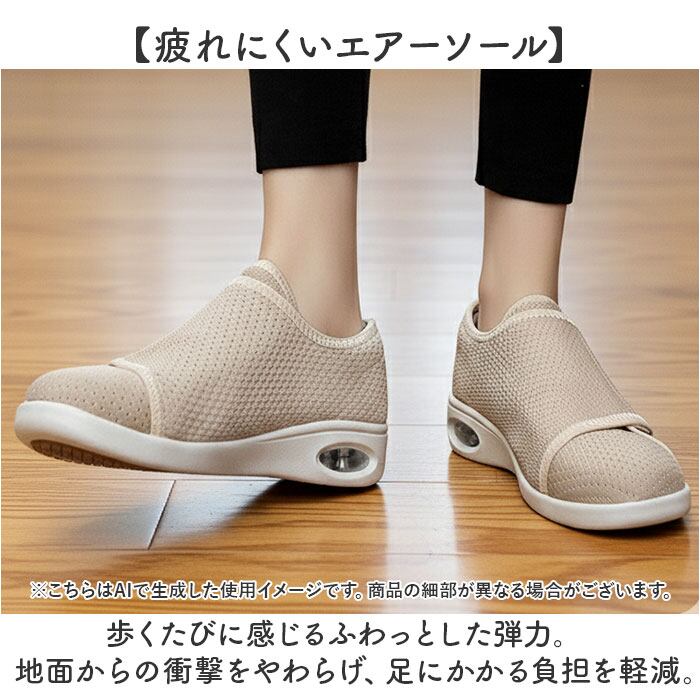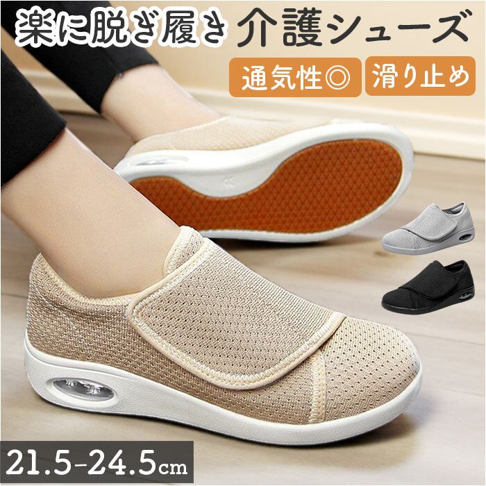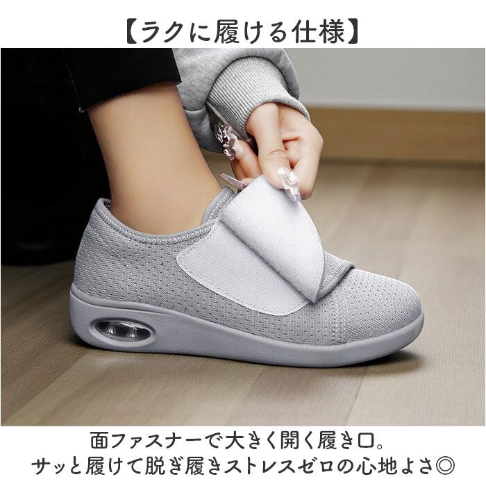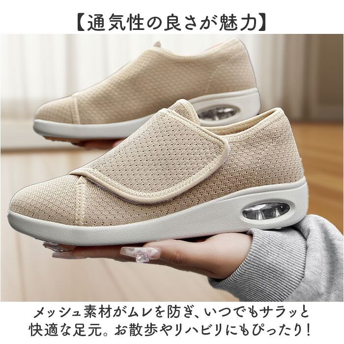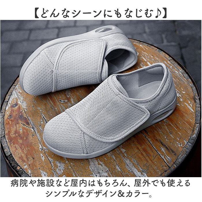 ・メッシュ素材がムレを防ぎ、いつでもサラッと快適な足元。お散歩やリハビリにもぴったり!