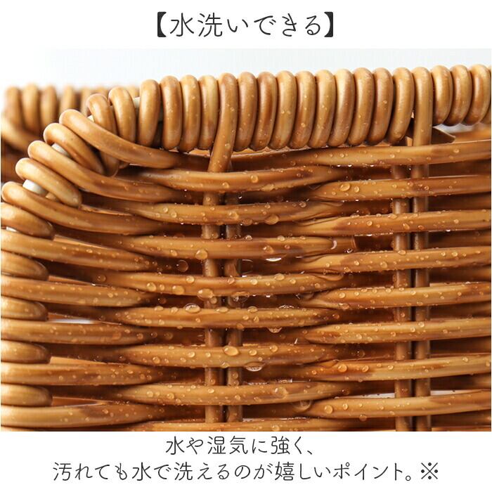 ・天然素材に見えるポリプロピレンとポリエチレンチューブ素材を使った手編みのバスケット。