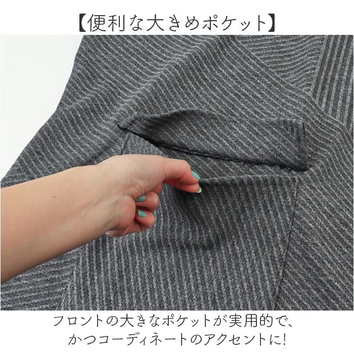 ・フロントの大きなポケットが実用的で、かつコーディネートのアクセントに!