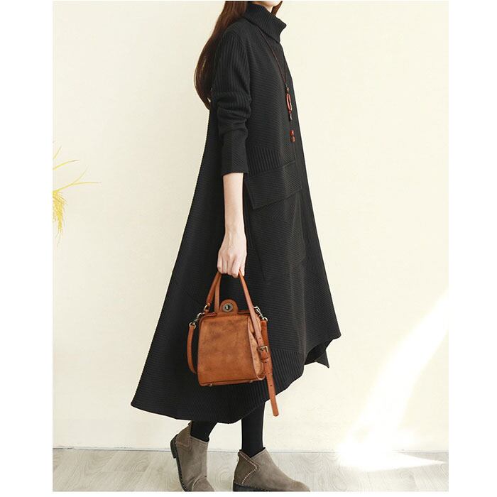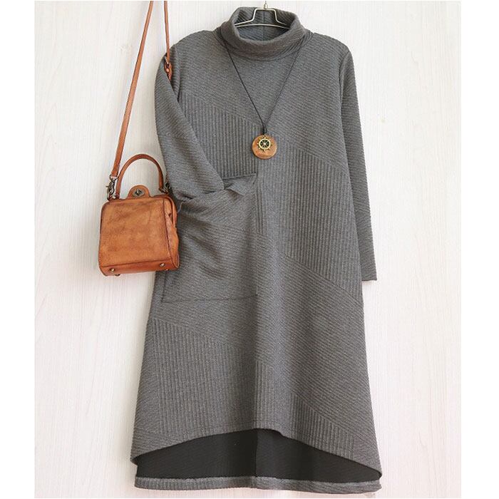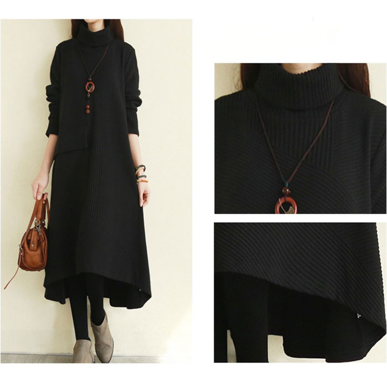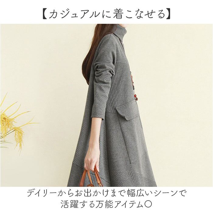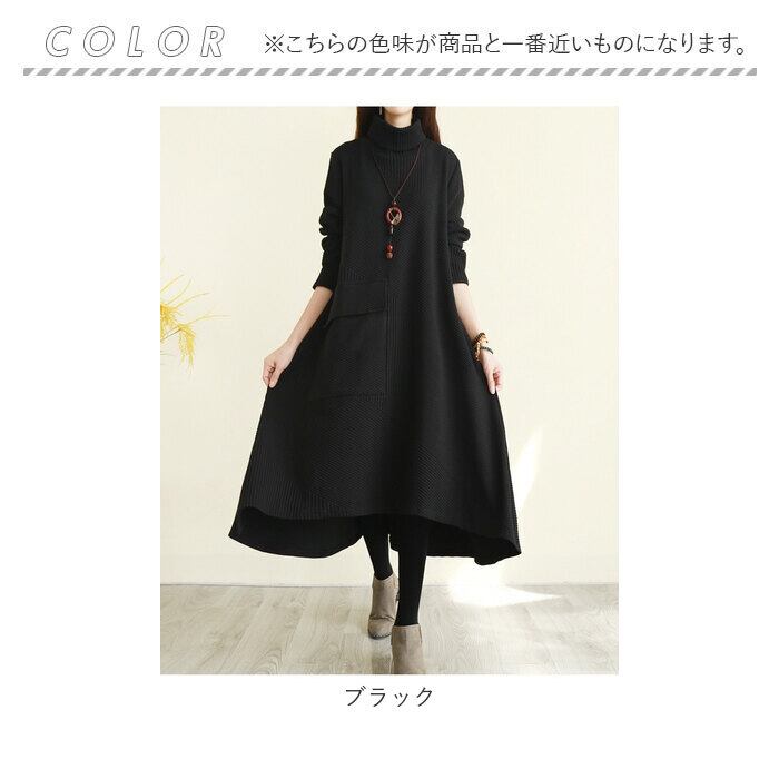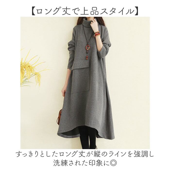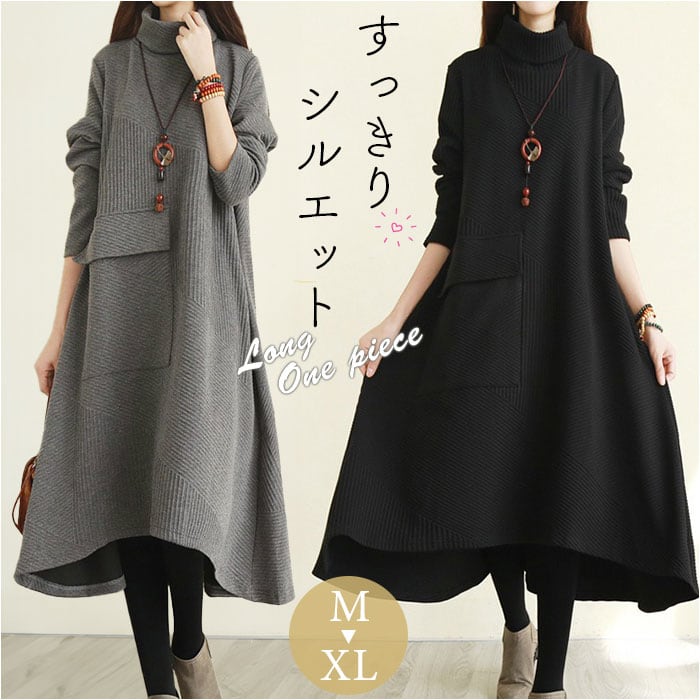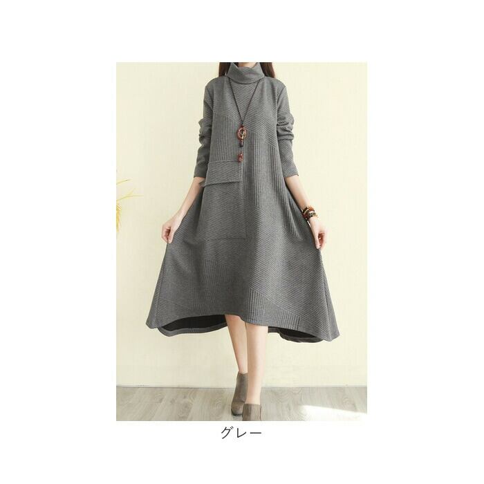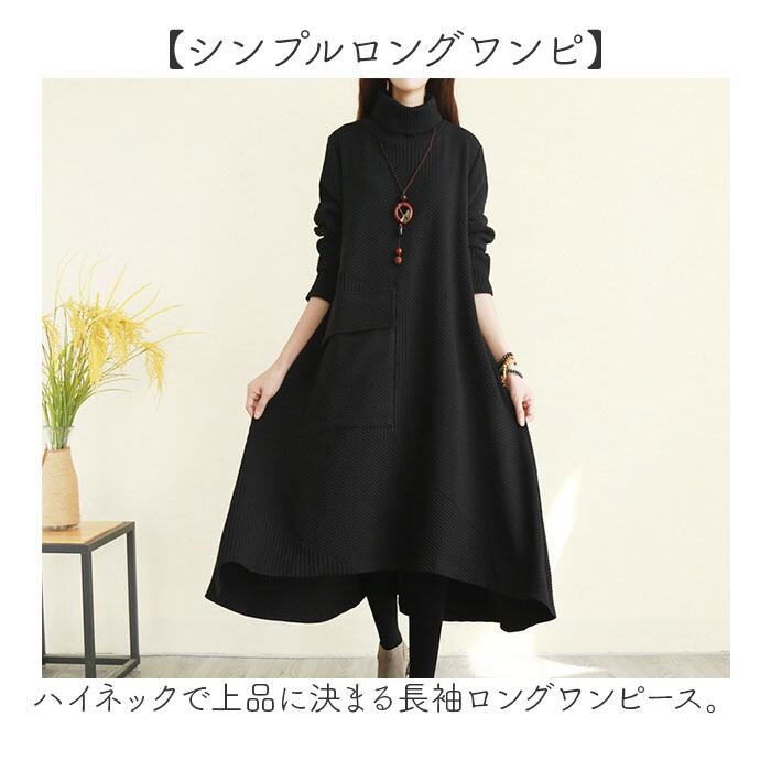 ・ハイネックで上品に決まる長袖ロングワンピース。