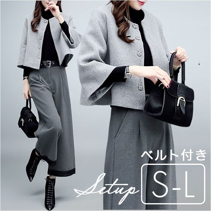 パンツスーツ セットアップ レディース 通販 ワイドパンツ ガウチョパンツ カジュアルスーツ ワイド ガウチョ シンプル 無地 ゆったり 体型カバー 上下セット セット カジュアル 長袖 ポケット 通勤 通学 上品 オフィス おしゃれ オシャレ