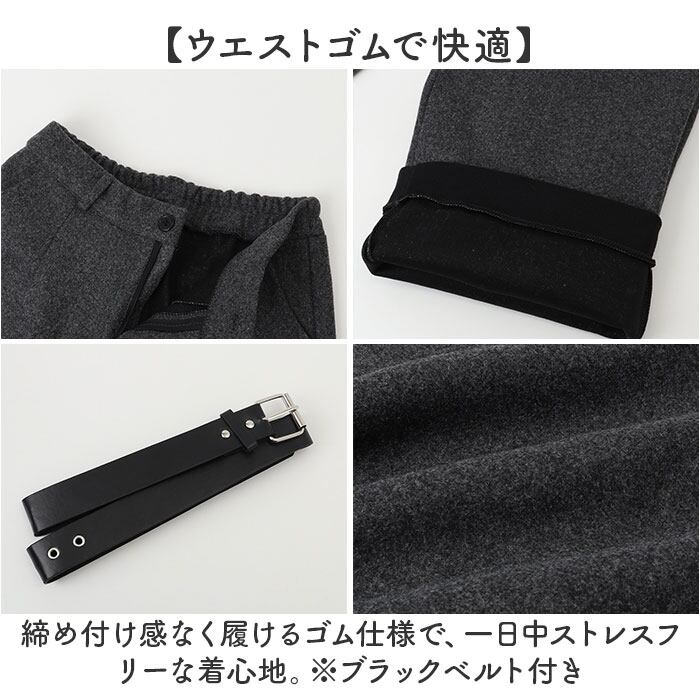 ・締め付け感なく履けるゴム仕様で、一日中ストレスフリーな着心地。※ブラックベルト付き