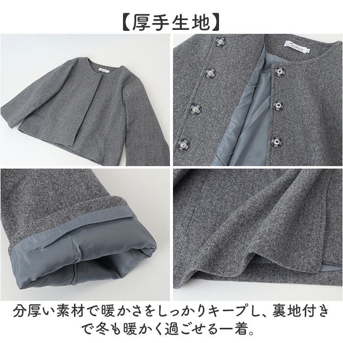 ・分厚い素材で暖かさをしっかりキープし、裏地付きで冬も暖かく過ごせる一着。