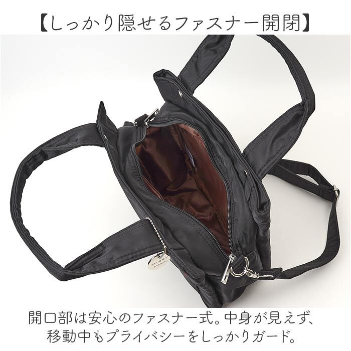 ・開口部は安心のファスナー式。中身が見えず、移動中もプライバシーをしっかりガード。
