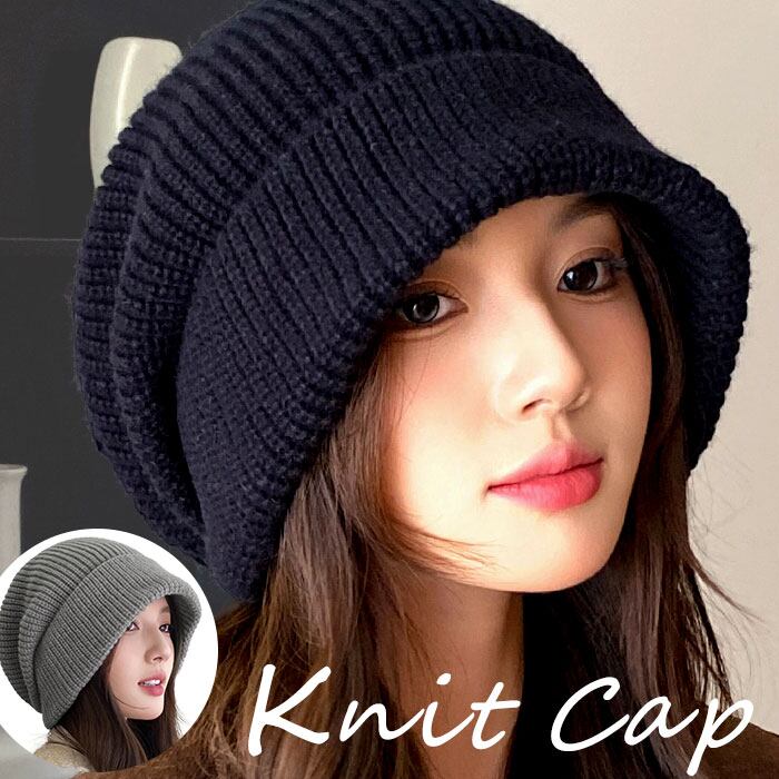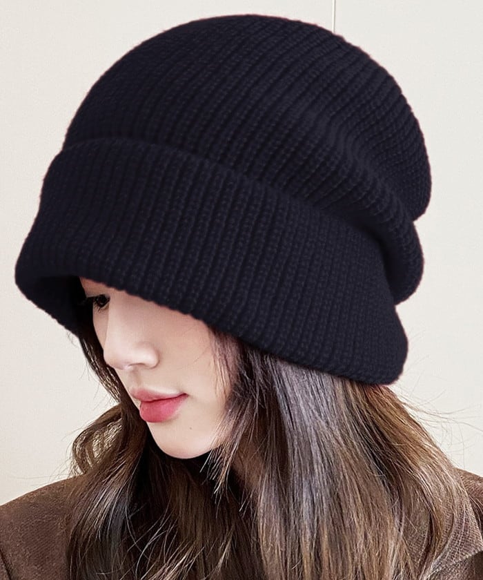 ・ゆるっとしたシルエットが特徴的なボリュームリブニット帽。