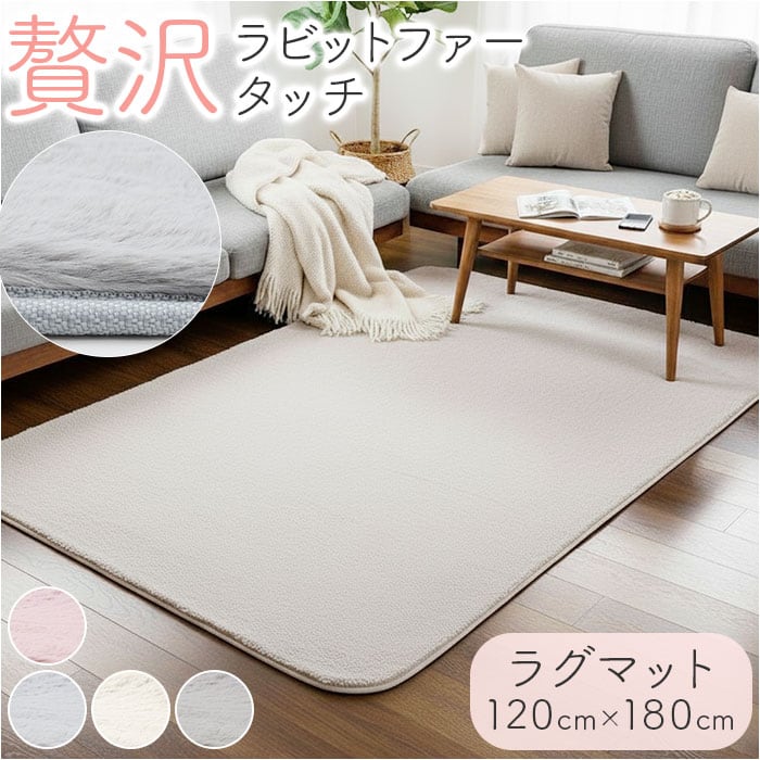 ・しなやかな肌触りが魅力「プレミアムラビットファーラグマット」120cm×180cm。