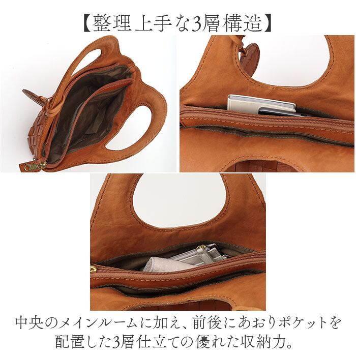 ・ナチュラルレザーの上品さと編み込みデザインが◎「zucchero 編み込み2wayショルダーバッグ」