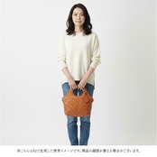・まるいハンドルがフェミニンな印象♪落ち着いたカラーと編み目が印象的で、オンオフ問わず活躍。