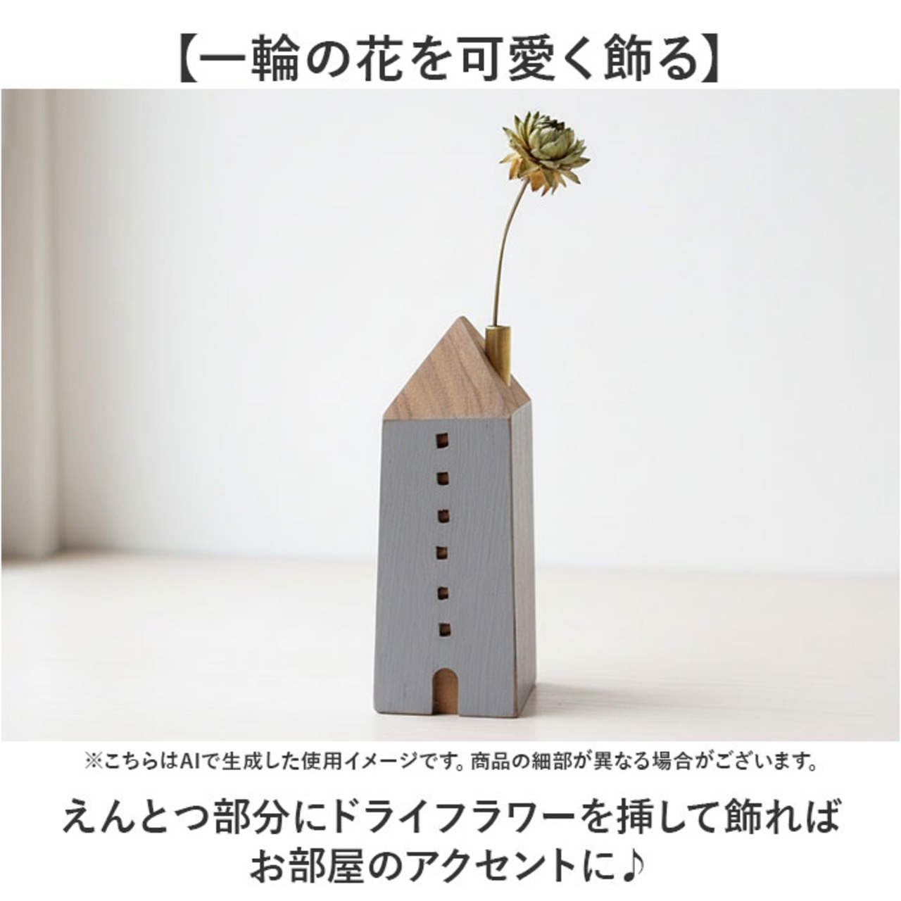 ・お花を飾らないときは煙突を取り外すこともできて、木のお家の置物としても楽しめる◎
