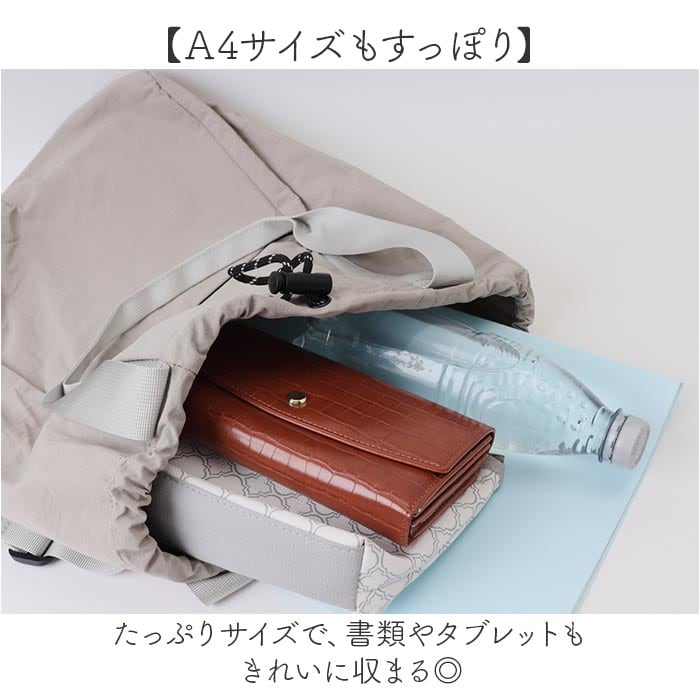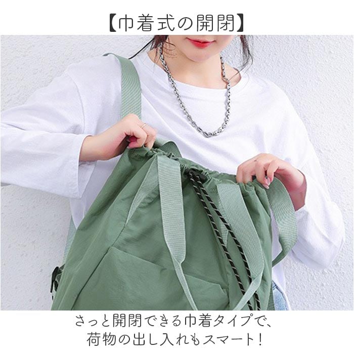 ・さっと開閉できる巾着タイプで、荷物の出し入れもスマート!
