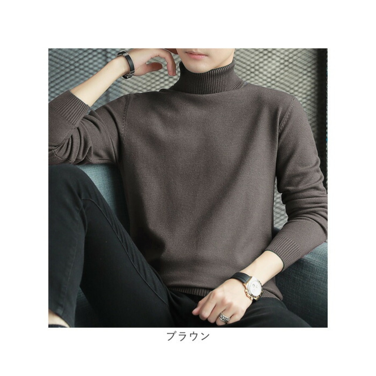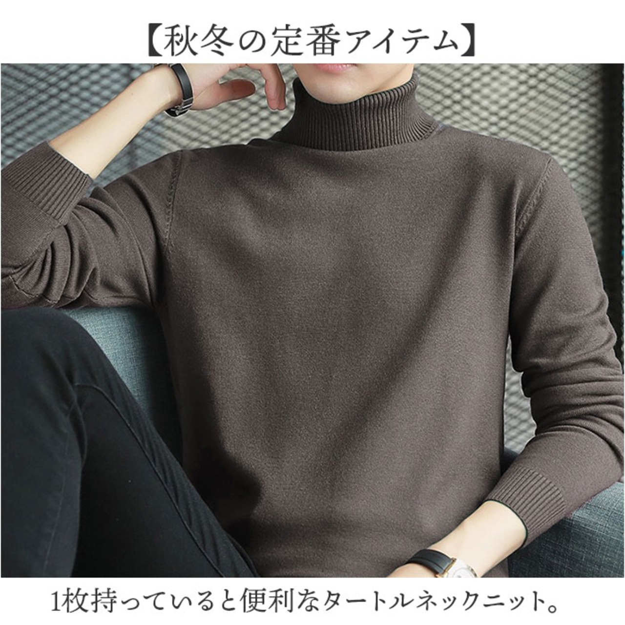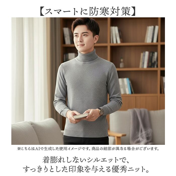 1枚持っていると便利なタートルネックニット。