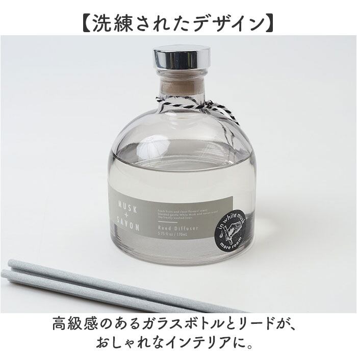・高級感のあるガラスボトルとリードが、おしゃれなインテリアに。