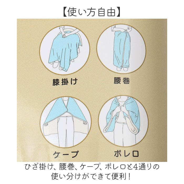 ・ひざ掛け、腰巻、ケープ、ボレロと4通りの使い分けができて便利!