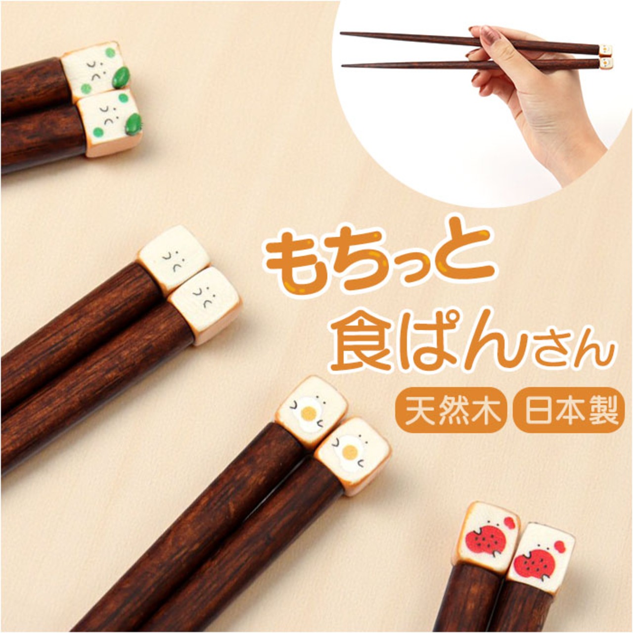 ・小さな食ぱんさんが、お箸の上にちょこん♪家族用にデザイン違いで揃えたり、贈り物にも!