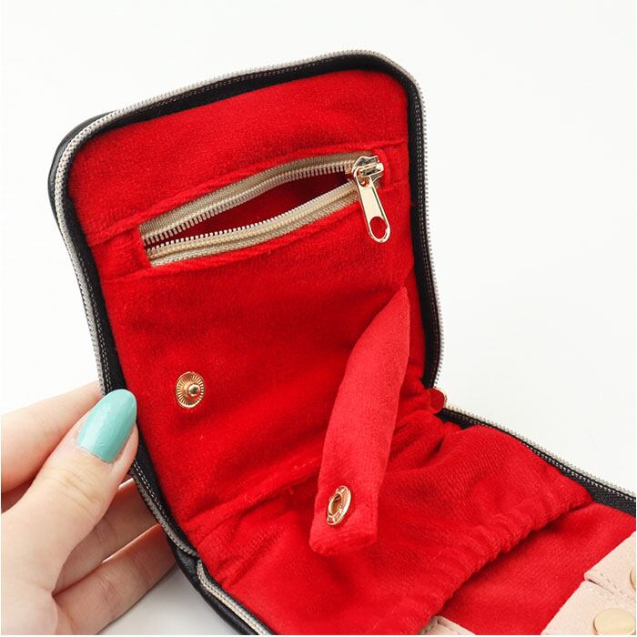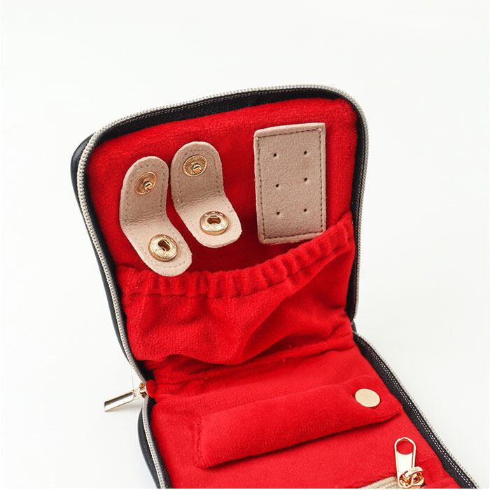 ・指輪ホルダー、ピアスやネックレスの収納部の他に、小物が収納できるファスナーポケット付き◎