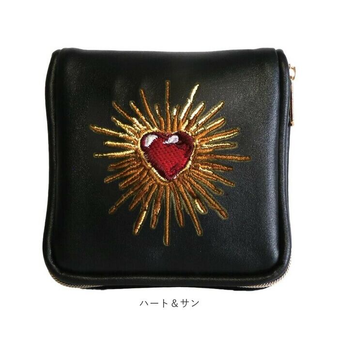 ・刺繍モチーフに意味が込められている、お守りのようなアクセサリーポーチ。