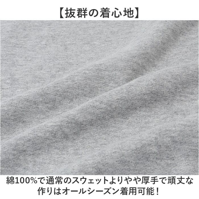 【抜群の着心地】綿100%で通常のスウェットよりやや厚手で頑丈な作りはオールシーズン着用可能!