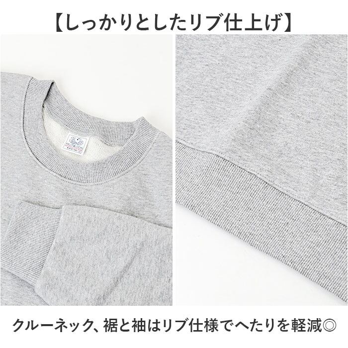 【しっかりとしたリブ仕上げ】クルーネック、裾と袖はリブ仕様でへたりを軽減◎