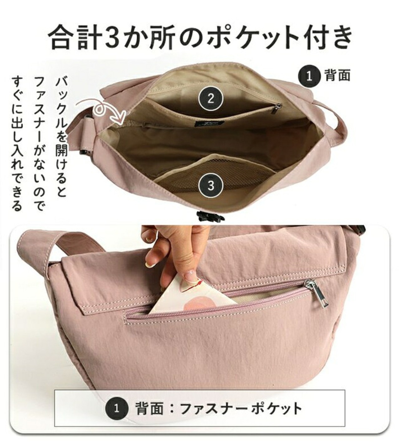 ・内側と外側にポケットがあり必要なものがすぐ取り出せる○