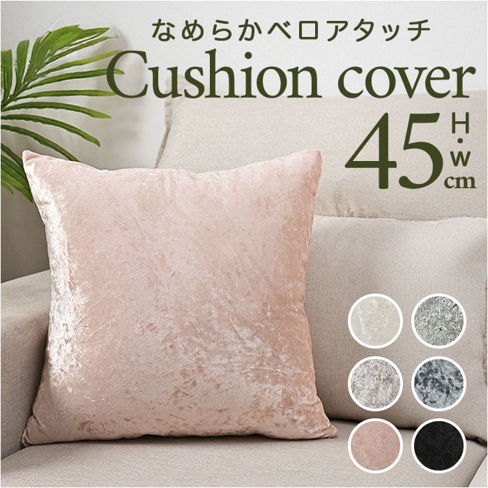 クッションカバー 45×45cm シャイニー 通販 おしゃれ 正方形 替えカバー 高級感 ベルベット ビロード 無地 シンプル モダン 可愛い お洒落 新生活 クッション カバー ホテルライク リビング 寝室 インテリア