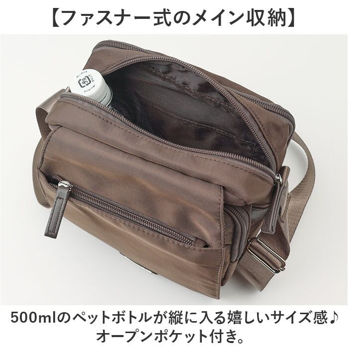 500mlのペットボトルが縦に入る嬉しいサイズ感♪オープンポケット付き。