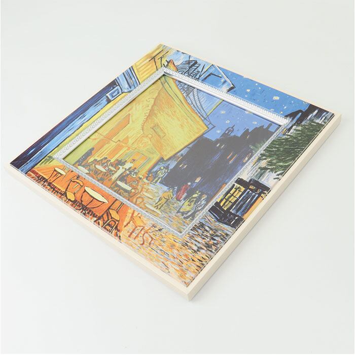 【絵と額の一体型デザイン】フレーム部分まで絵が描かれおり、まるで名画が壁から飛び出すような迫力ある仕上がり。