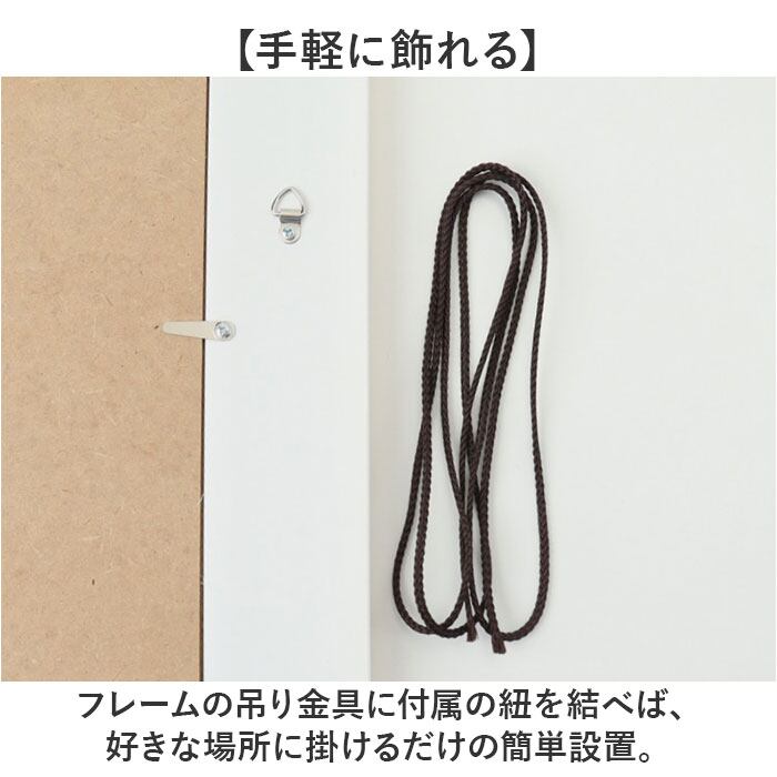 【手軽に飾れる】フレームの吊り金具に付属の紐を結べば、好きな場所に掛けるだけの簡単設置。