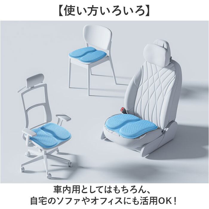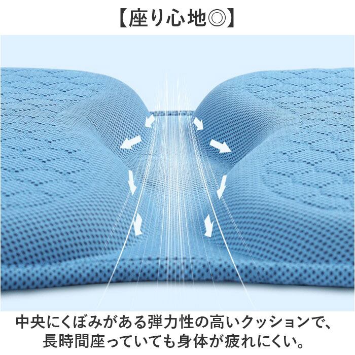 ・中央にくぼみがある弾力性の高いクッションで、長時間座っていても身体が疲れにくい。