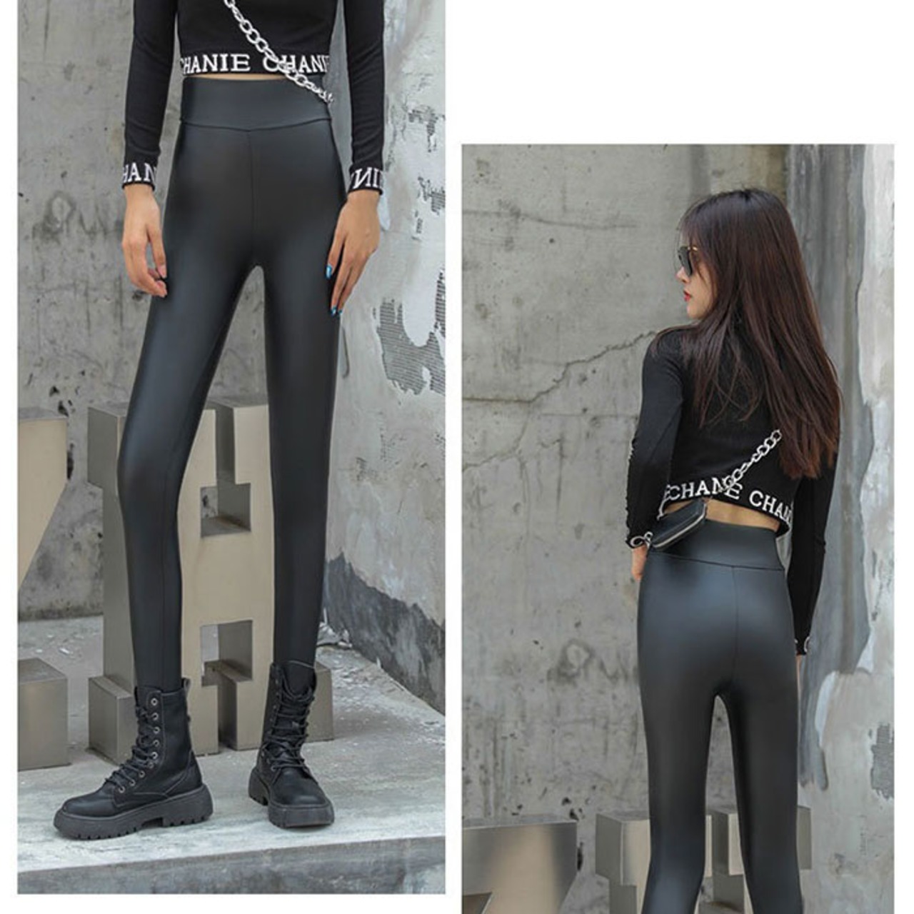 美脚 パンツ レギンス フェイクレザー