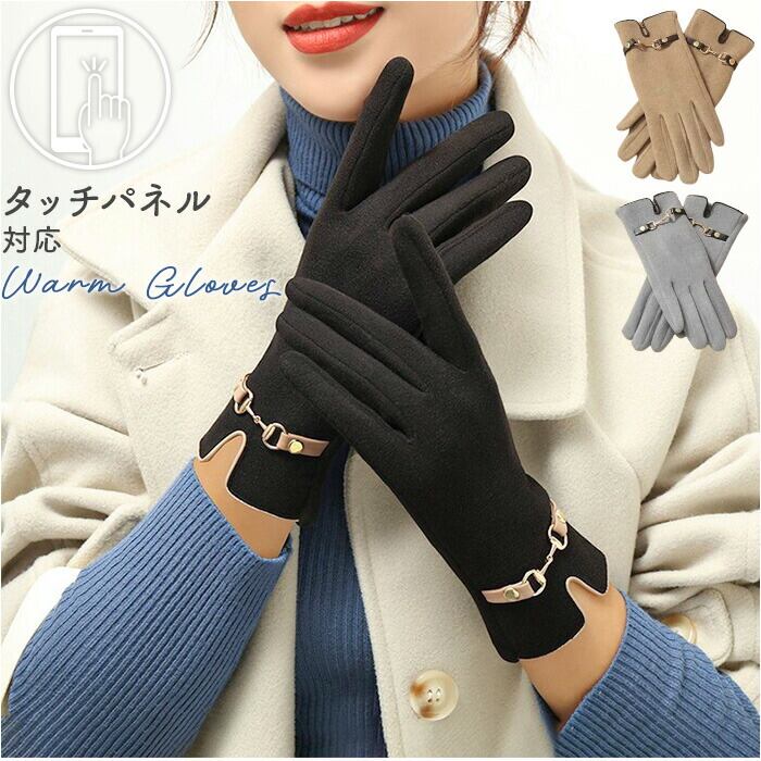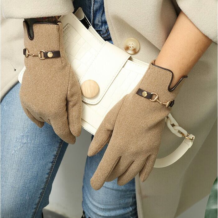・上品なベルトデザインで手元を華やかに演出するレディース手袋♪