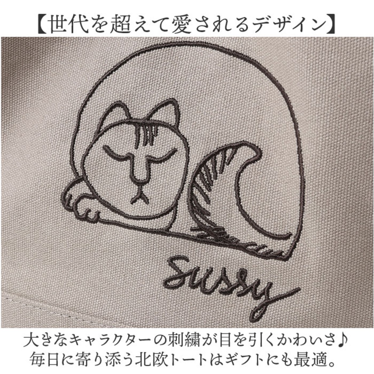 ・大きなキャラクターの刺繍が目を引くかわいさ♪毎日に寄り添う北欧トートはギフトにも最適。