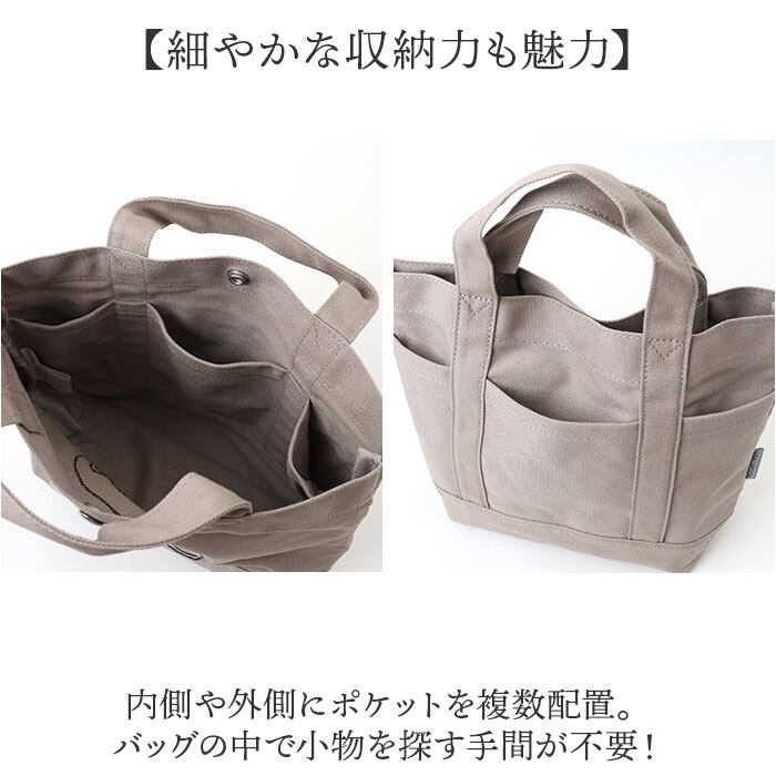 ・程よい厚みがあり、丈夫な帆布生地を使用。マチがあり、置いたときも安定感のあるフォルム。