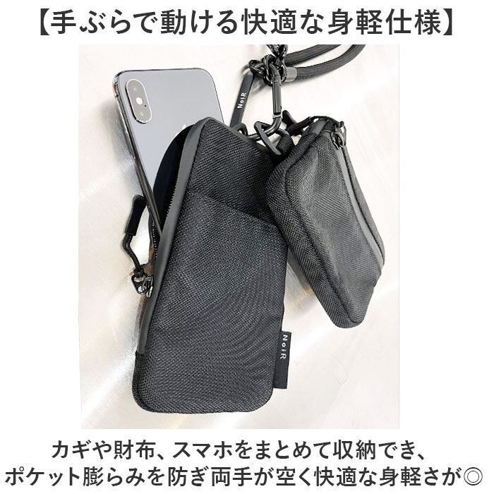 ・カギや財布、スマホをまとめて収納でき、ポケット膨らみを防ぎ両手が空く快適な身軽さが◎