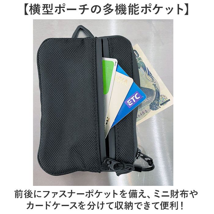 ・前後にファスナーポケットを備え、ミニ財布やカードケースを分けて収納できて便利!