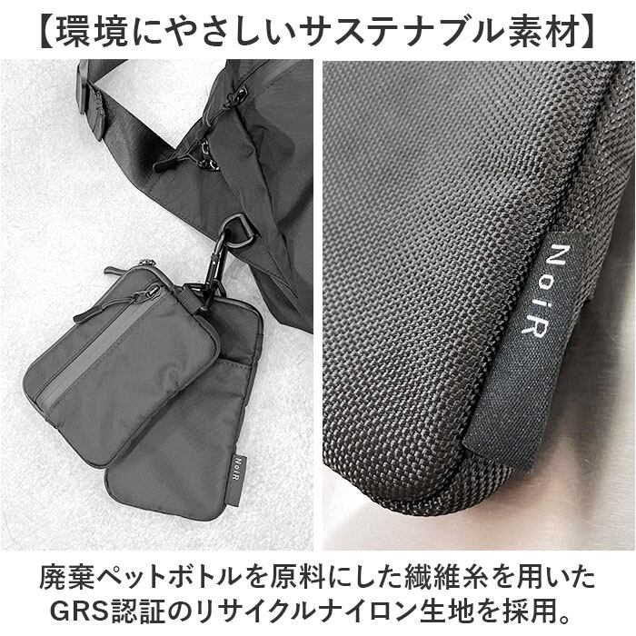 ・廃棄ペットボトルを原料にした繊維糸を用いたGRS認証のリサイクルナイロン生地を採用。