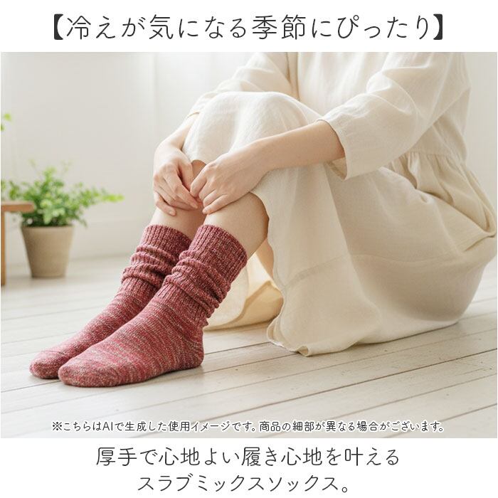 ・厚手で心地よい履き心地を叶えるスラブミックスソックス。