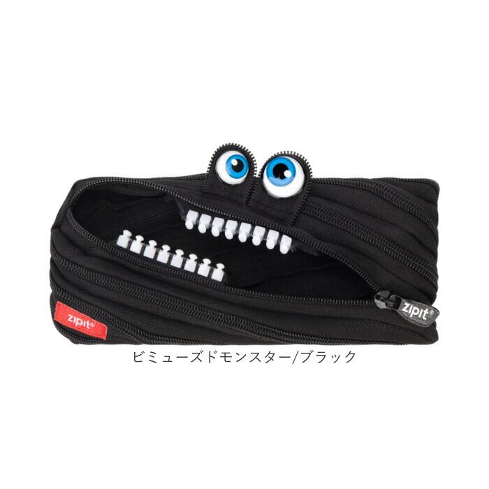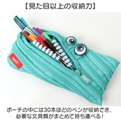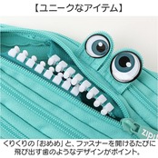 ・くりくりの「おめめ」と、ファスナーを開けるたびに飛び出す歯のようなデザインがポイント。