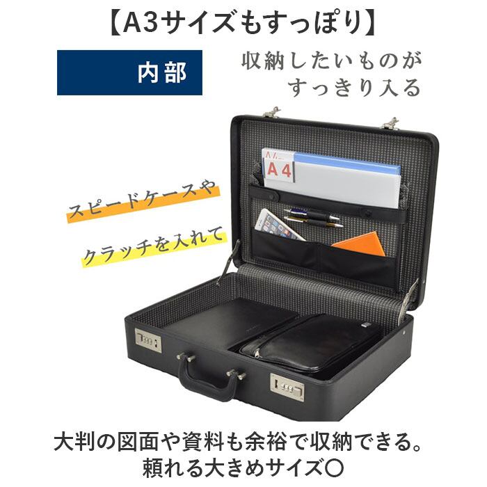 ・大判の図面や資料も余裕で収納できる。頼れる大きめサイズ〇