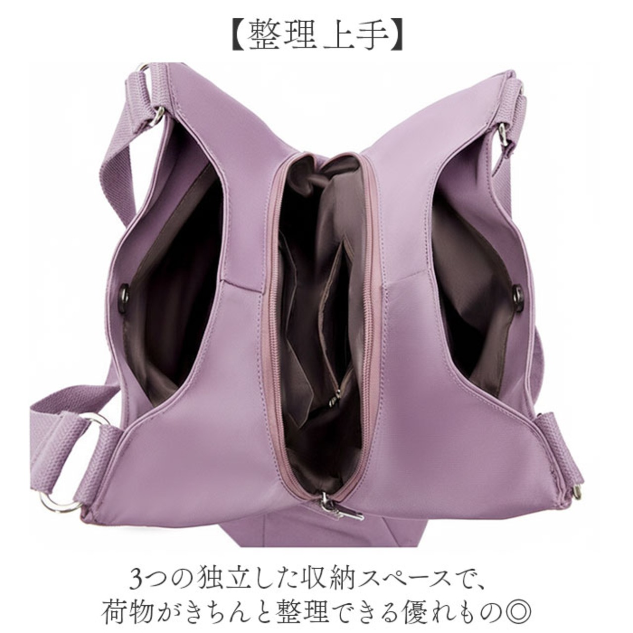 3つの独立した収納スペースで、荷物がきちんと整理できる優れもの◎