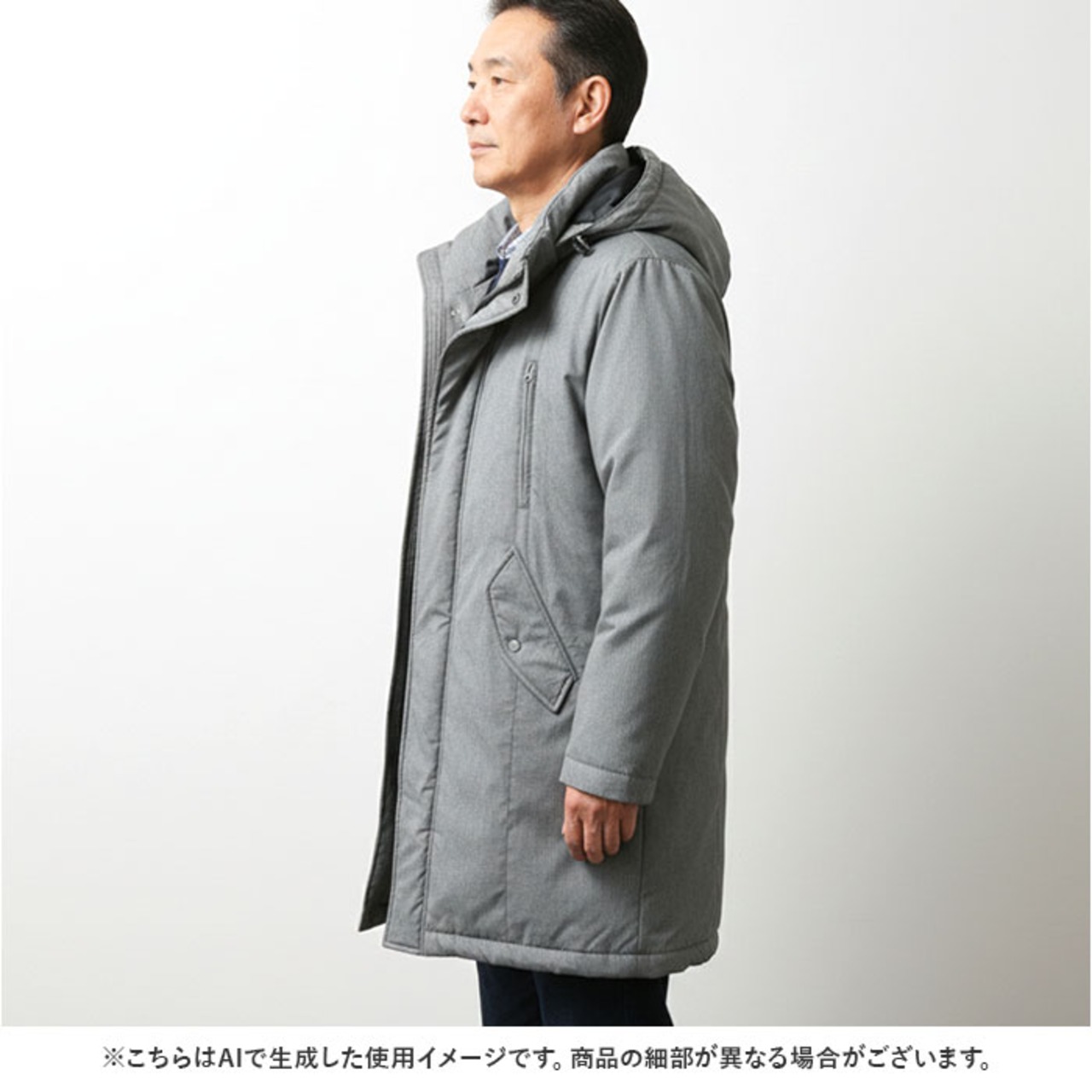 ・長めの着丈で、マットな質感と落ち着いた色味が大人の雰囲気を演出。